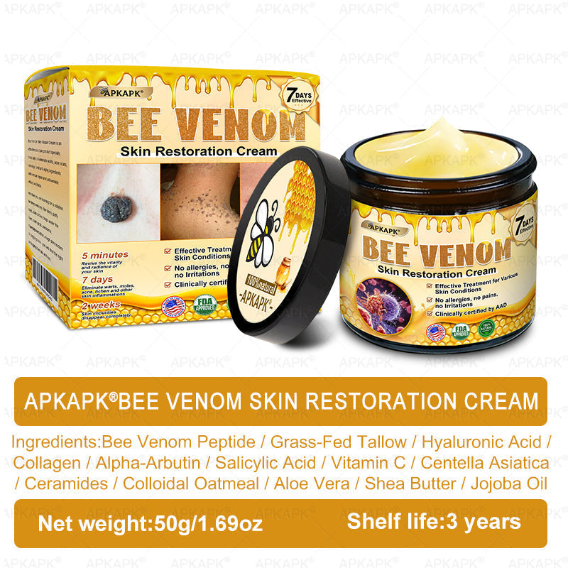 “As a dermatology specialist, my mission has always been to find safe, natural, and effective skin repair solutions. With the support of the International Association of Dermatology, our clinical research involving over 5,000 participants has confirmed the remarkable efficacy of 𝐀𝐏𝐊𝐀𝐏𝐊® Bee venom Skin Restoration Cream in reducing inflammation and itching, fading warts and moles, lightening dark spots, and improving skin firmness and elasticity. The formula combines bee venom peptides, grass-fed tallow, hyaluronic acid, and Centella Asiatica, working synergistically to nourish, repair, and strengthen the skin barrier while promoting cell renewal and long-term anti-aging defense.